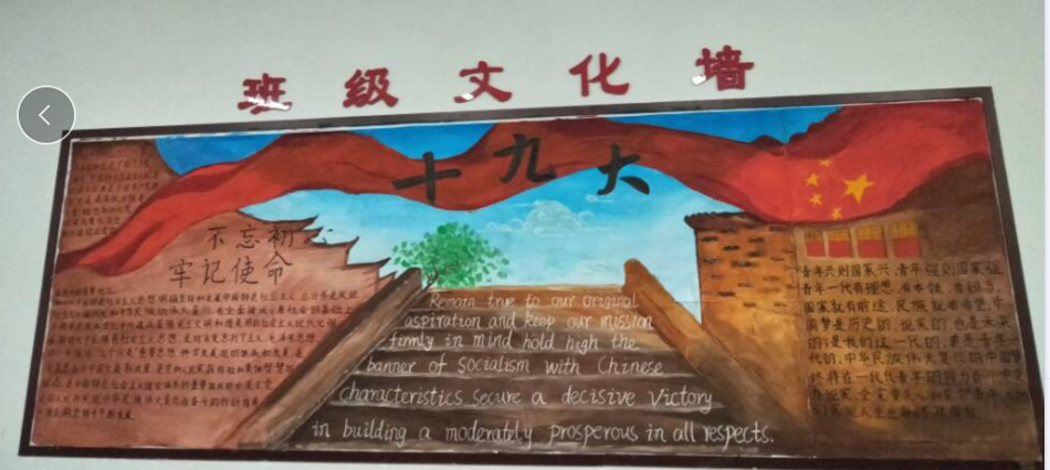 为深入学习贯彻党的十九大精神,坚定学生的理想信念,营造积极进取、健康向上、温馨和谐的班级文化氛围,培养新时代合格大学生,应用外语系于11月份举办了丰富多彩的班级文化墙活动。