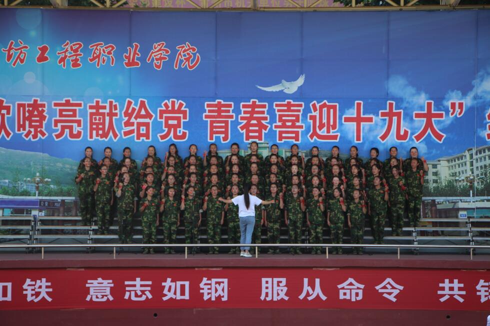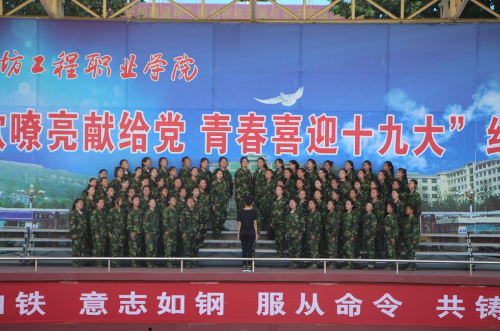 红歌会上,全体学生精神饱满、士气高昂,整齐的队列、飒爽的英姿、嘹亮的歌声展示出了潍工学子积极向上的精神风貌。军训团各连尽显其能,《当那一天来临》《强军战歌》《保卫黄河》《我们奋力拼搏》等耳熟能详的歌曲引来场中观众阵阵掌声。他们用优美嘹亮的歌声描述军营生活,以良好的精神面貌表达了当代大学生热爱祖国、热爱人民、珍爱和平、创造美好未来的心声以及对学院、对大学生活的挚爱与向往之情。