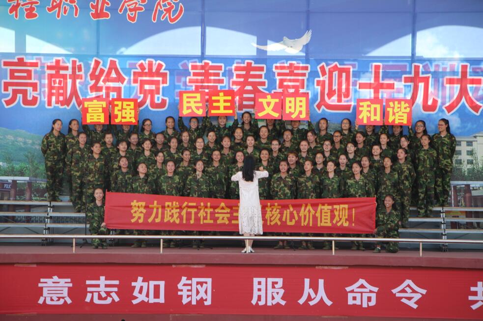 9月12日下午,我院“军歌嘹亮献给党 青春喜迎十九大”红歌会在学院操场举行。各系(院)和团委学生处教师代表、2017级全体新生参加了活动,各系(院)团总支负责人担任评委。