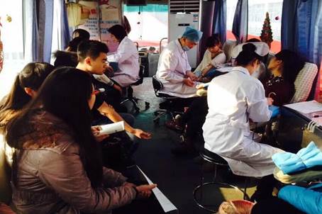 献血活动中,同学们整齐列队、积极咨询、耐心等候,脸上洋溢着温暖而真挚的笑容。在医护人员和青年志愿者的协助下填表、化验、抽血,一切工作都有条不紊。部分2014级同学是第一次献血,志愿者们耐心的向他们介绍献血的有关注意事项。许多青年志愿者在志愿服务过后也亲身参与到活动中来,他们对公益事业的热情支持与积极参与,不仅感动了自己,也感动了在场的每一个人。