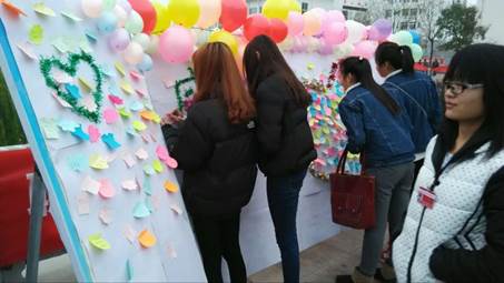 活动现场,色彩鲜艳的海报吸引同学们驻足,大家通过阅读海报内容了解关于感恩节的由来以及感恩节的节日意义。同时,同学们纷纷将自己的感恩祝福和感恩故事记录在五颜六色的“便利贴”上,形成一片寄托深情的感恩墙,把满满的正能量传递出去。