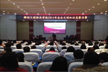 11月25日晚,由团委学生处、安全保卫处联合主办,院学生会承办的“2014年大学生安全文明知识竞赛”在新校区学术报告厅举行。本次活动历时一个月,经过初赛、复赛,四支代表队脱颖而出。活动得到了各院系团总支的积极配合,主办部门相关负责人参加了活动。