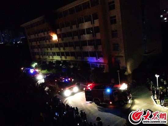 【据新华网山东频道报道】10月30日晚7点10分左右,日照大学城毓秀园公寓区四楼一学生宿舍着火,火势从着火宿舍阳台窜出,直烧到六楼楼顶。有知情者透露,火灾由一充电的暖手宝引起。据了解,发生火灾的宿舍住着某学院的几名女学生。目前,抢修施工人员正在进行墙体清理。