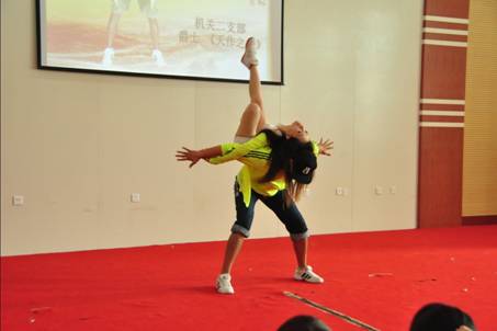 舞蹈《开门大吉》拉开了文艺演出的序幕,紧接着,各单位师生轮番登场,同台献艺,令在场观众大饱眼福。《梦幻华尔兹》、《咏春》、《爱莲说》三种不同风格的舞蹈,集中体现了我院教师丰富的才艺技能以及学生在“SQC”一体化人才培养模式下取得的骄人成绩,美妙的舞姿和着悠扬的音乐,醉人心脾,博得阵阵掌声;街舞《天作之合》、《热情》、《Luck girls》,啦啦操《舞动青春》动感的舞姿,引爆全场,让在场观众感受到了青春的力量与激情;舞蹈《High歌》、《中国火》的表演者全部是我院一线教师,他们朝气蓬勃,他们群情激昂,尽显积极向上的正能量;由多种舞蹈形式串烧的节目《腾飞》将演出推向高潮,动感的舞姿,预示着学院的明天将更加灿烂辉煌;和风细雨的好时节,天地与人和;和颜悦色的好感觉,人人很亲和,舞蹈《和谐中国》表达了我院全体党员在深入落实贯彻党的十八大精神过程中的美好寄托与无限期盼;演出最后,全体在场人员起立,高唱《没有共产党就没有新中国》表达了“潍工人”将永远跟党走,继续奋勇向前,再创佳绩的信心与决心。