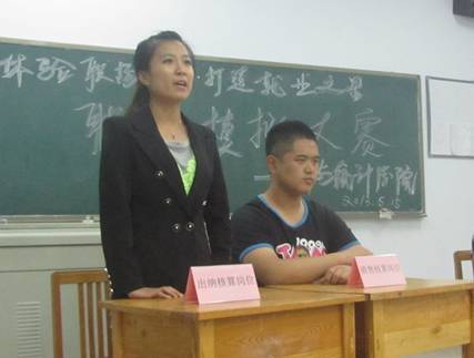 2013年5月15日,会计与统计学院在1303教室举办了一场别具特色的会计职场模拟大赛,经过三个环节的激烈角逐,最终,韩雪梅、李美林、张丹丹和赵萌萌四位同学成为本次比赛的“就业之星”。
