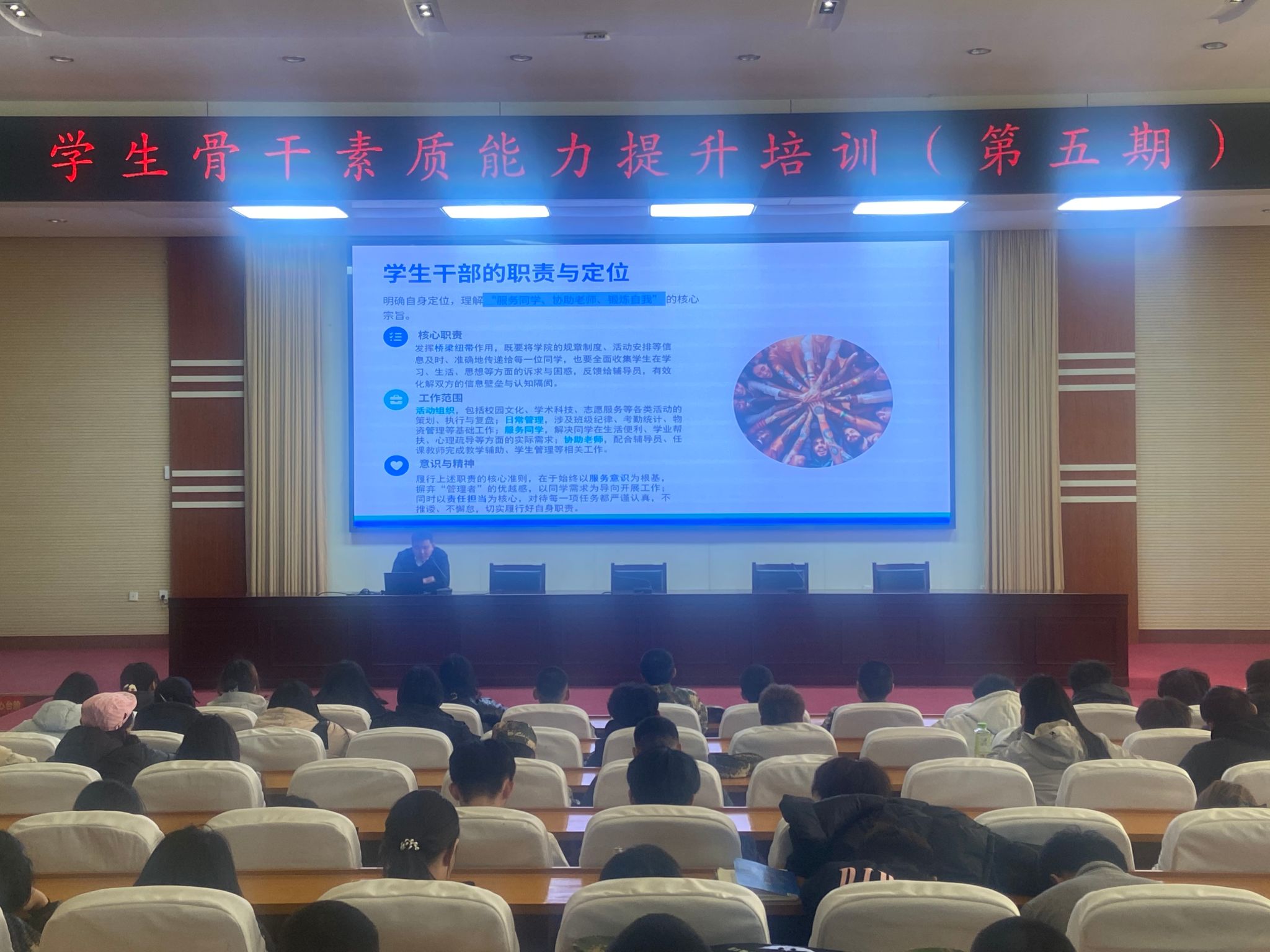 12月4日,第五期学生骨干素质能力提升培训在云门山校区学术报告厅举行。本期培训由教师教育学院学生管理科科长鲁志勇主讲。各二级学院学生骨干300余人参加培训。