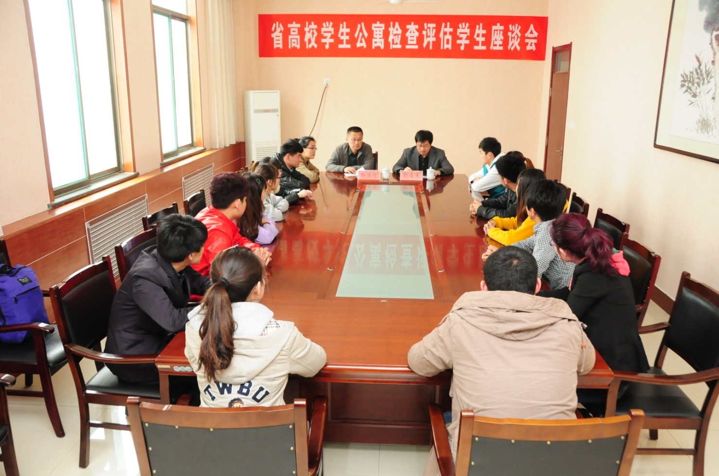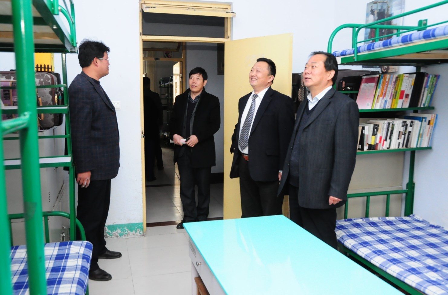 汇报会后,专家组一行到各学生公寓楼进行了实地考察,参观了各楼公寓辅导员值班室和活动室,详细了解了公寓建设、基础管理、安全管理等实际问题。专家组还分组召开了学生座谈会,查阅了我院公寓管理工作资料。