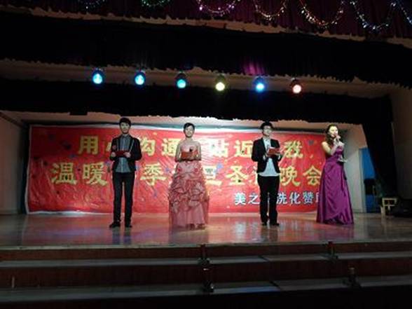 12月24日晚6:30,由语言学院与百度潍坊工程职业学院贴吧吧务组共同组织的“喜迎圣诞元旦晚会”在大学生活动中心拉开帷幕。