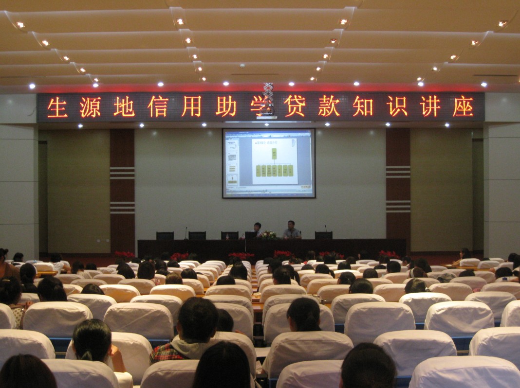 为进一步做好今年我院生源地信用助学贷款工作,让同学们更深入地了解生源地信用助学贷款政策,院学生资助管理中心特邀青州学生资助管理中心刘彦、临朐县学生资助管理中心胡德凯两位老师,于6月1日晚上7:30在院学术报告厅举办了生源地信用助学贷款专题知识讲座。团委学生处副处长陆洪芳主持讲座。我校已申请和计划申请生源地信用助学贷款的同学300余人参加了讲座。