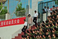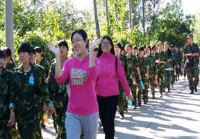 置身于翠绿的草坪上,轻风拂过我的脸颊。伴随着一声哨响,一群群身穿迷彩服的“新兵”在教官的带领下排成直线,一面面的鲜红的系旗在风中飘扬,一首首嘹亮的军歌回荡于耳……