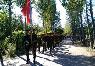 “啾……”一声哨响,野外拉练活动拉开了帷幕。学生以两路纵队出发,鲜红的校旗、系旗随风飘扬,显示着青年的青春与活力,表明着我们的身份,让每一个参与者都感受着一种默默的自豪感与亲切感。随着拉练路线在同学们脚下延伸,队伍逐渐出现些许断层,同学们步伐不再齐头并进了。虽然每个人脸上现出吃力的神情,脸上的汗水也在不停地往下流,但却没有一个学生因为累而掉队。周围的环境让我们暂时忘却了疼痛与劳累,心中容纳的是一阵强烈的清新与广阔。