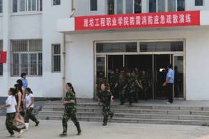 9月11日,团委学生处、安全保卫处组织2013级新生进行了一次防震消防应急疏散演练,从大一新生入手,加强对我院学生安全教育,强化遇险逃生意识,提高学生自我保护能力。
